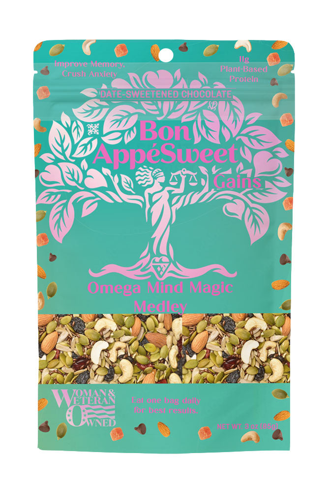 We’ve curated a delicious mix of enhancing chocolate, nuts, berries, and seeds. Rich in omega-3 and antioxidants, this mix can also improve memory and alertness. Snack away!